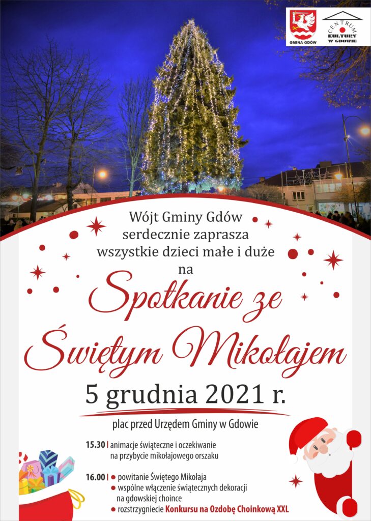 Już w niedzielę, 5 grudnia od 15:30 oczekiwać będziemy wspólnie na przybycie św. Mikołaja, który ma odwiedzić Gdów.W trakcie spotkania ze św. Mikołajem nastąpi wspólne włączenie świątecznych dekoracji na choince w rynku oraz sprawdzimy czy jegomość ubrany w czerwony strój przygotował dla najmłodszych jakieś prezenty. Zapraszamy do udziału w zabawie!
