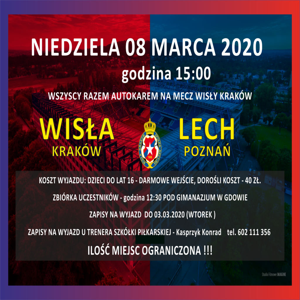 WYJAZD NA MECZ WISŁA KRAKÓW – LECH POZNAŃ – NIEDZIELA 8 MARCA … GODZINA 15:00